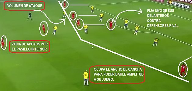 ocupación de ancho de cancha, dando variantes interiores y externas para el