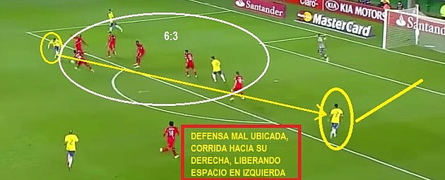 Un ejemplo de esto fue en el segundo gol de Brasil, lo que se ve en estas dos